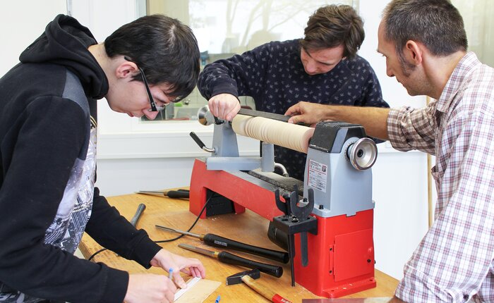 Die Unterstützung findet zum einen im geschützten Rahmen in eigenen Räumen statt, Trainings-felder sind Handwerk, Hauswirtschaft und Textil. Auch eine begleitende Unterstützung direkt am Arbeitsplatz der Auszubildenden ist möglich.