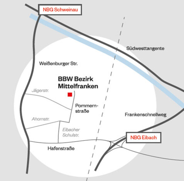 Unser BBW hat zwei Standorte: den Hauptstandort Nürnberg und unsere Außenstelle in Ansbach. Am Standort Nürnberg bieten wir 110 Wohnplätze an, damit die Wege zur Ausbildung und in die Schule kurz werden. Individuelle Fachdienstleistungen und –angebote unterstützen den erfolgreichen Verlauf. Rund 150 Kolleginnen und Kollegen mit ganz unterschiedlichen Berufen und Aufgaben kümmern sich darum, dass alles gut läuft.